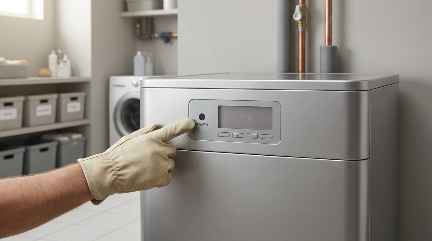 Après avoir constaté l’absence d’eau chaude, le premier réflexe est de regarder le boîtier de commande pour identifier l’état des témoins lumineux.
